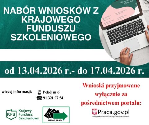 UWAGA PRACODAWCY I PRZEDSIĘBIORCY! Ruszamy z naborem wniosków z Krajowego Funduszu Szkoleniowego Nabór wniosków o dofinansowanie kształcenia ustawicznego trwa: od 13 kwietnia 2026 r. do...