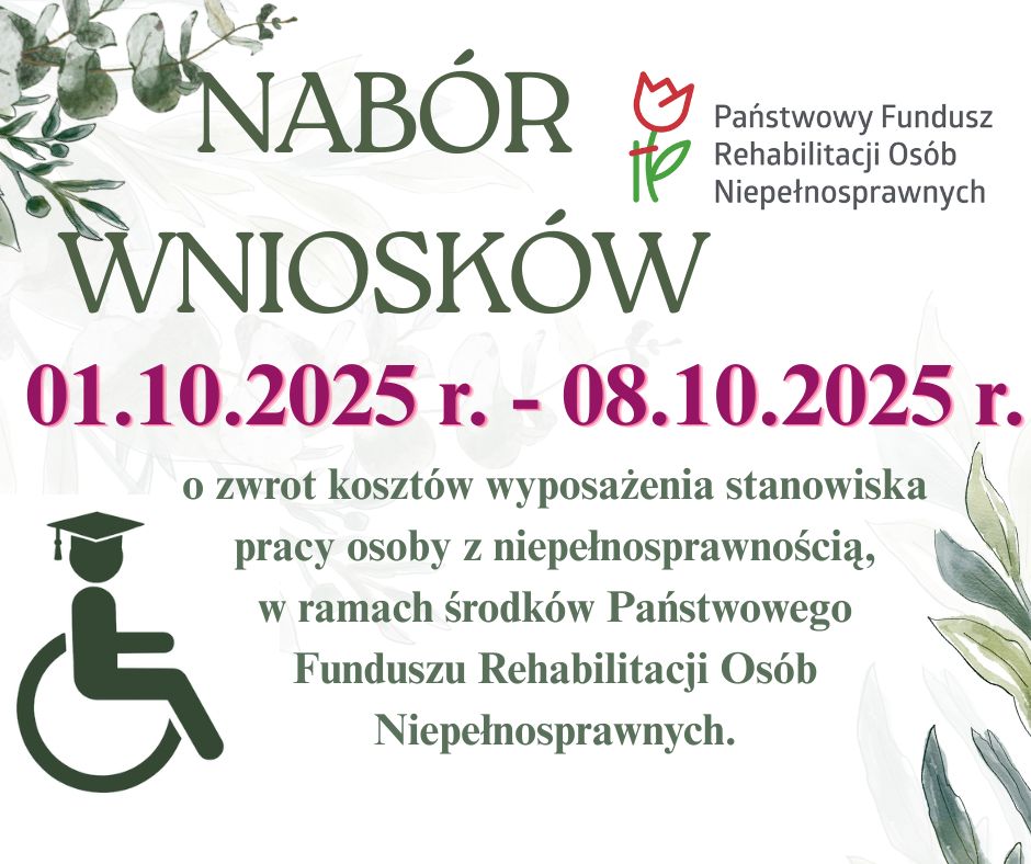 Nabór wniosków o zwrot kosztów wyposażenia stanowiska pracy osoby z niepełnosprawnością.